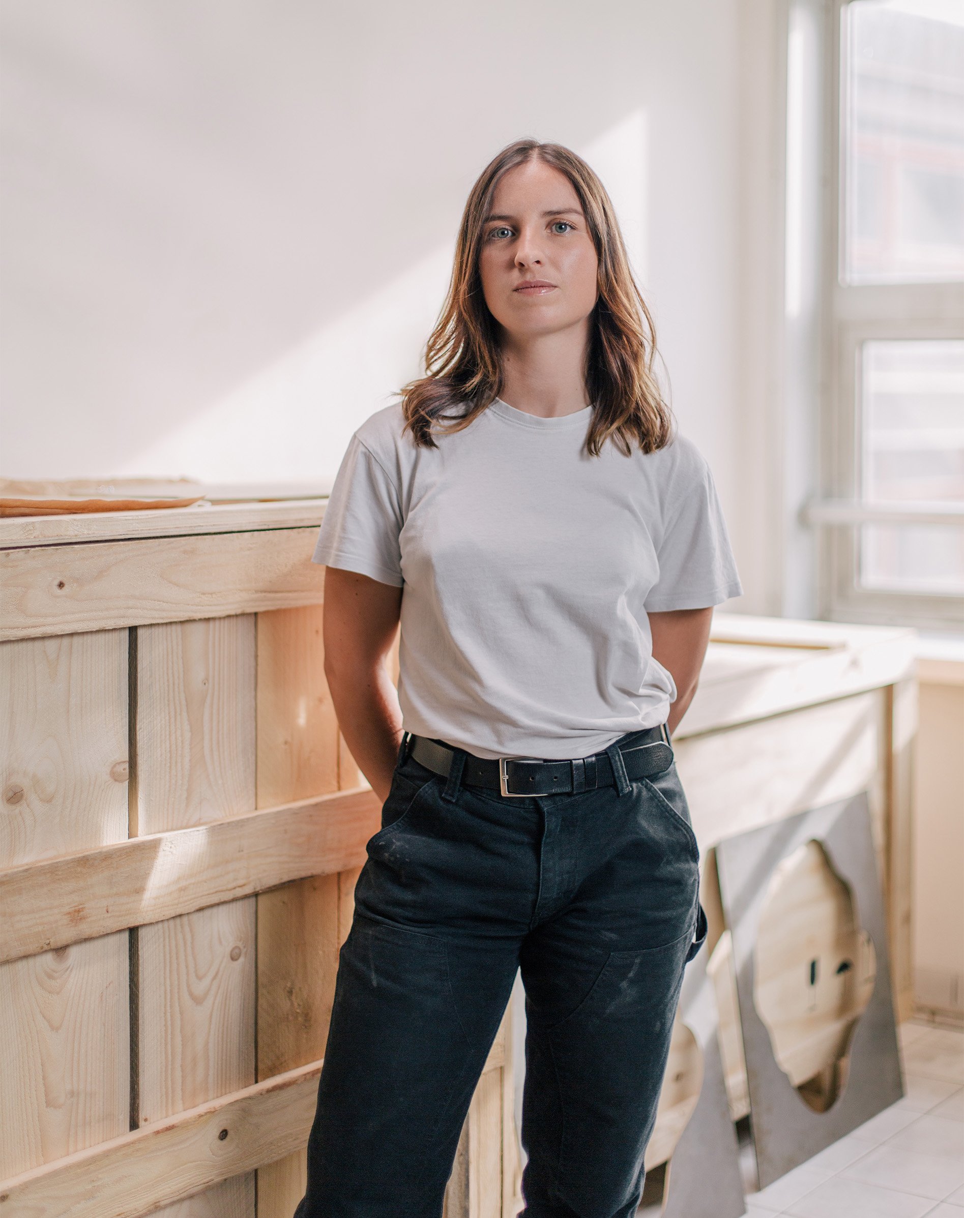 Diplômée de l’école Boulle à Paris et de la Design Academy d’Eindhoven, Wendy Andreu fascine le monde du design, de l’art et de la mode par ses innovations. La créatrice aime mélanger les matériaux pour créer du mobilier surprenant. En 2014, désireuse de fabriquer des objets en tissu, elle met au point sa propre technique en mêlant cordes et silicone. Ce nouveau procédé « textile » imperméable connu sous le nom de « Regen » - signifiant pluie en néerlandais – la fait connaître. Sa méthode unique permet sans patronage ni coutures de ne pas perdre de matière. Cette démarche d’éco-conception qu’elle applique dans toute son œuvre résonne avec le projet des miroirs pour Polène.