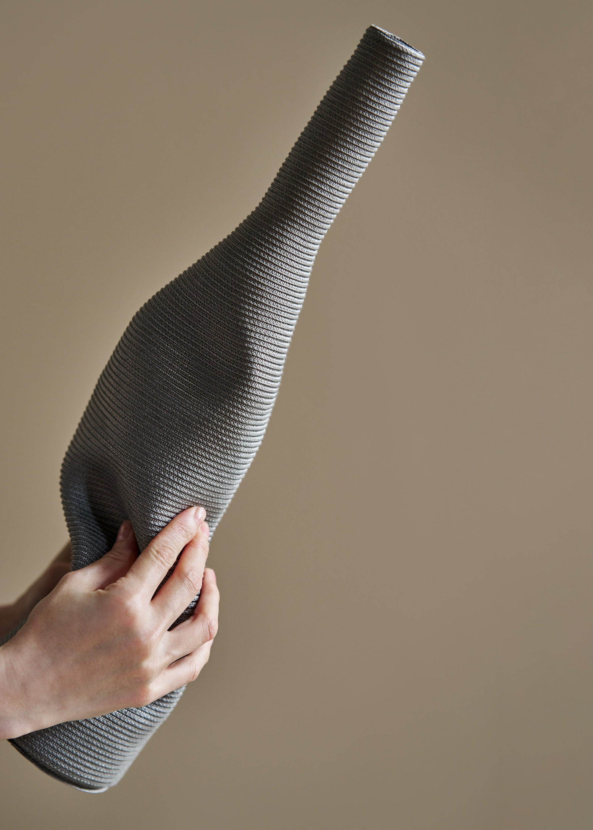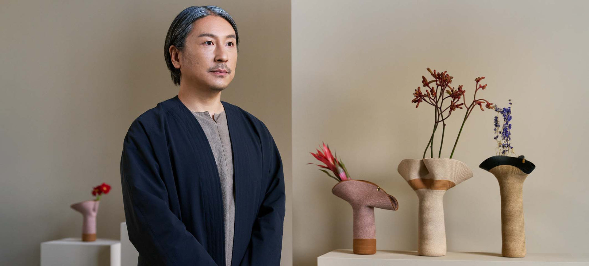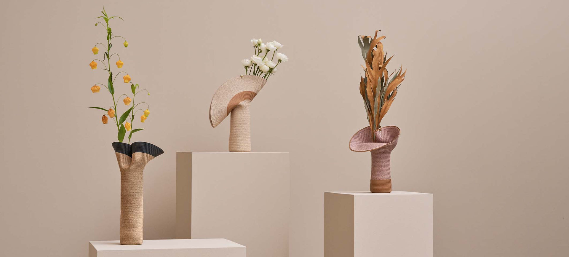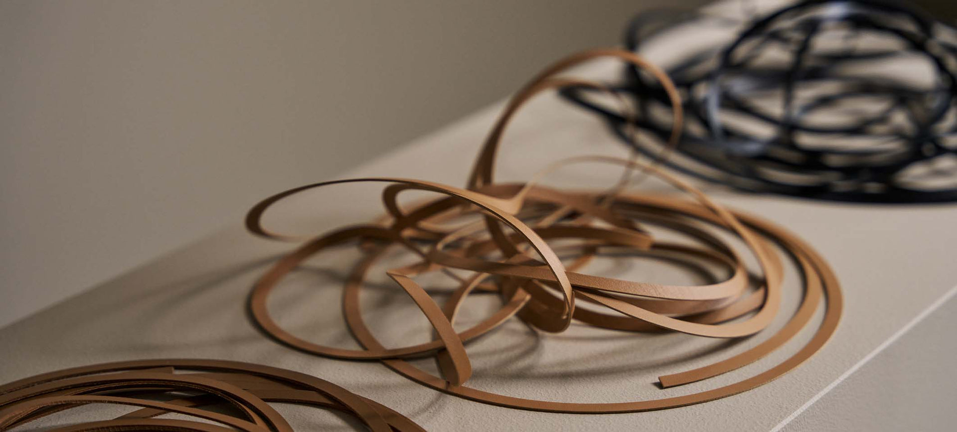Une collection inédite lancée en mai 2023, signe la rencontre de deux maisons d'artisanat, l'une française, l'autre japonaise. Un dialogue créatif entre chutes de cuir et fibre de papier tissée donne naissance à trois vases en édition limitée.