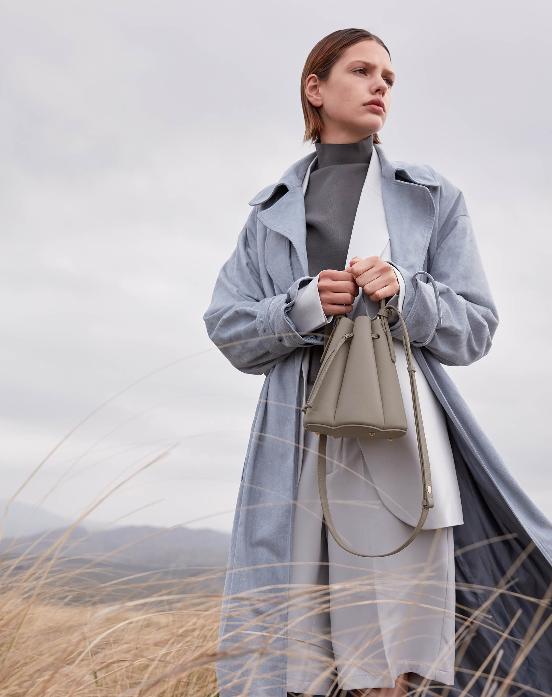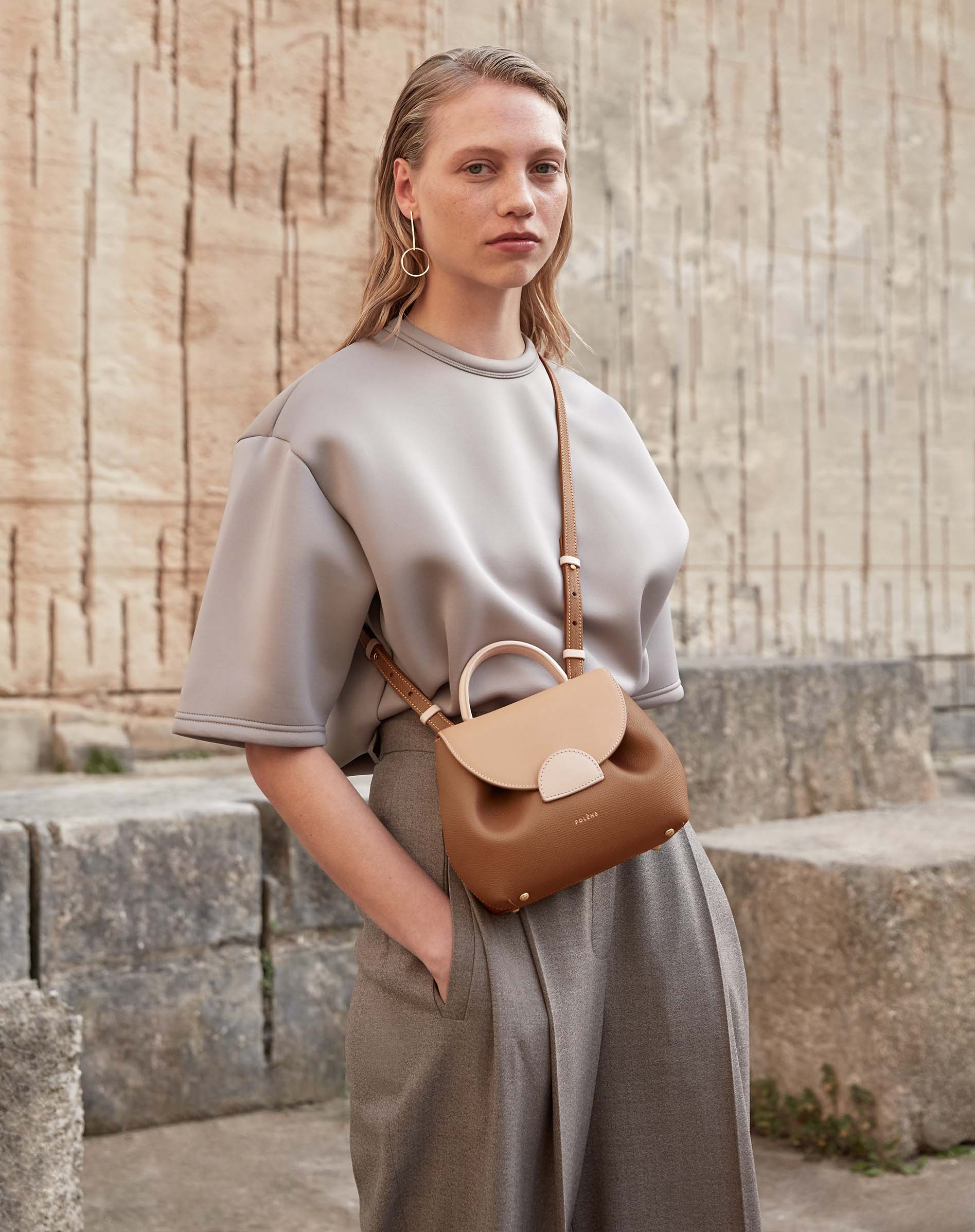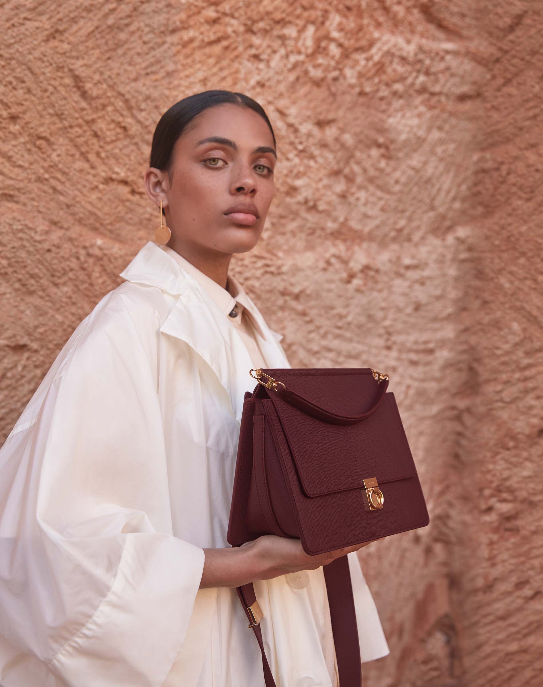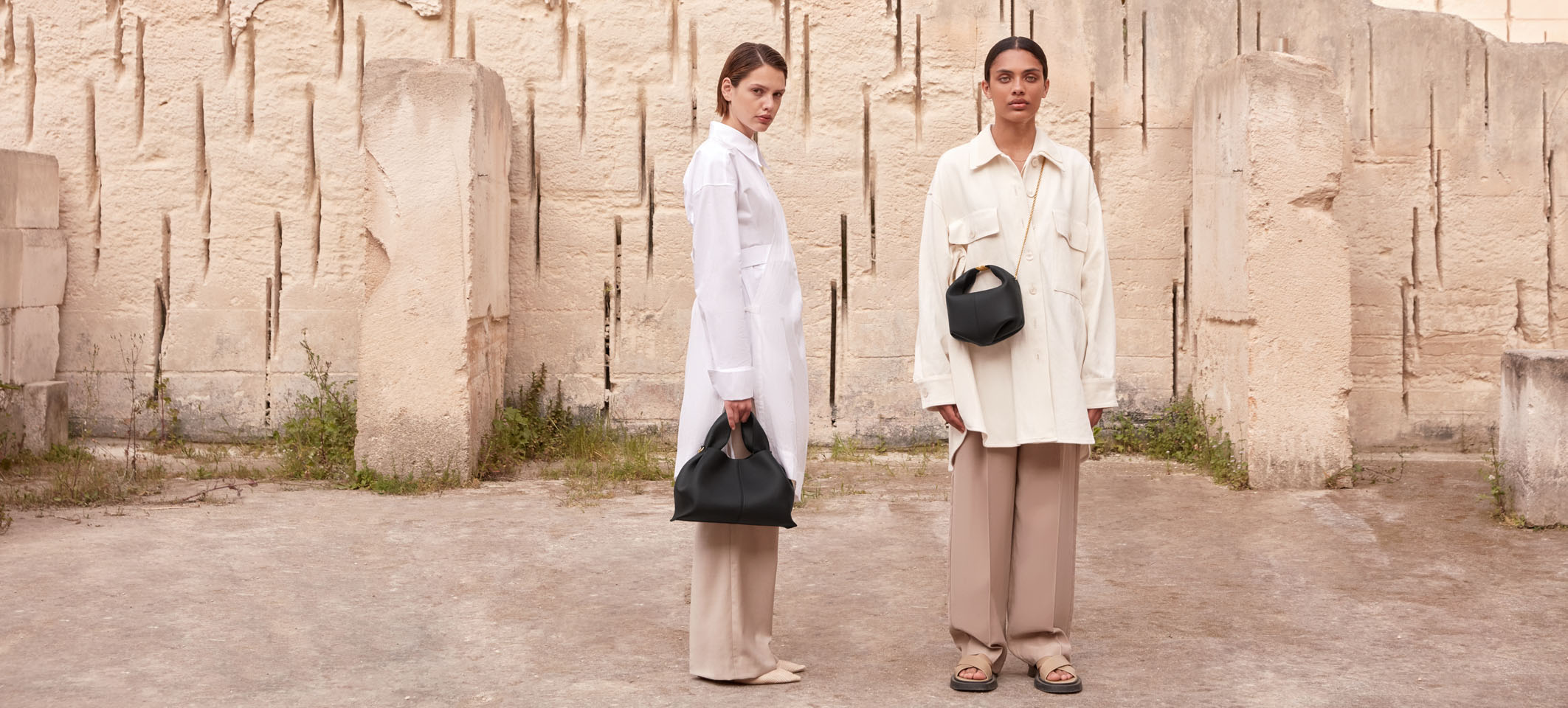 Roches ciselées venant plonger dans la mer, labyrinthe minéral, carrière de pierre architecturale viennent accueuillir la collection de maroquinerie Polène.