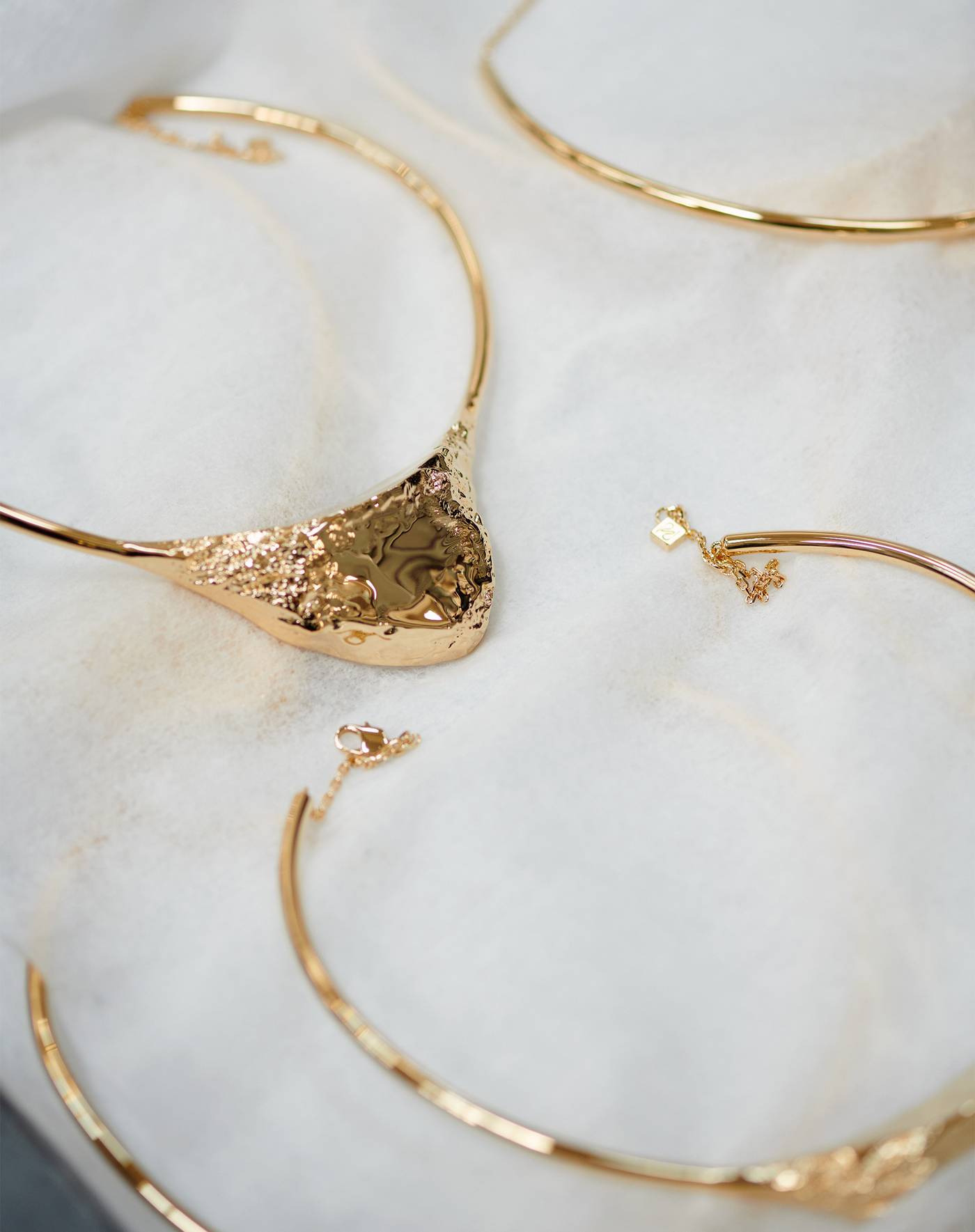 Inspirée par les paysages minéraux, la collection sculpte dans le laiton des textures travaillées dans le détail pour reproduire l’aspect de la roche. Son caractère plus brut est équilibré par la finesse des chaînes, des pendentifs évidés ou des créoles qui allient d’un seul tenant fluidité polie et texture granit.