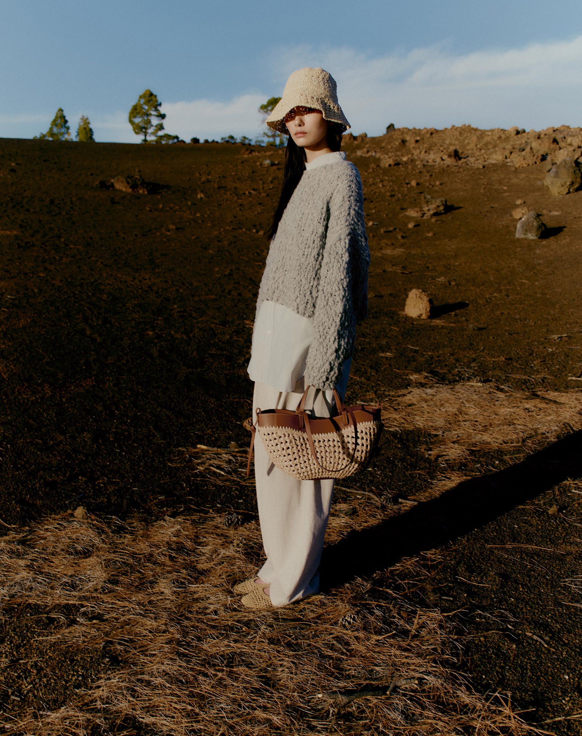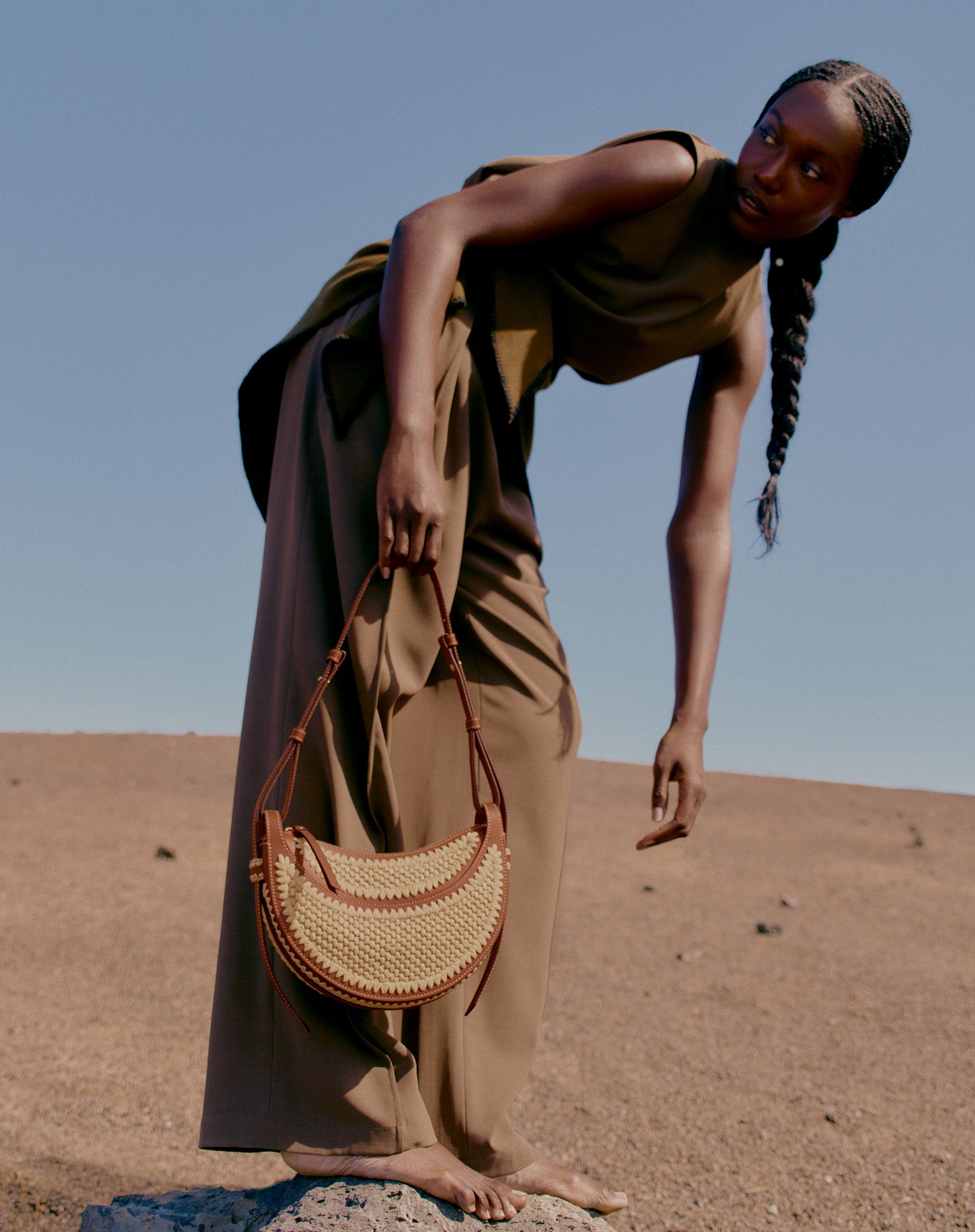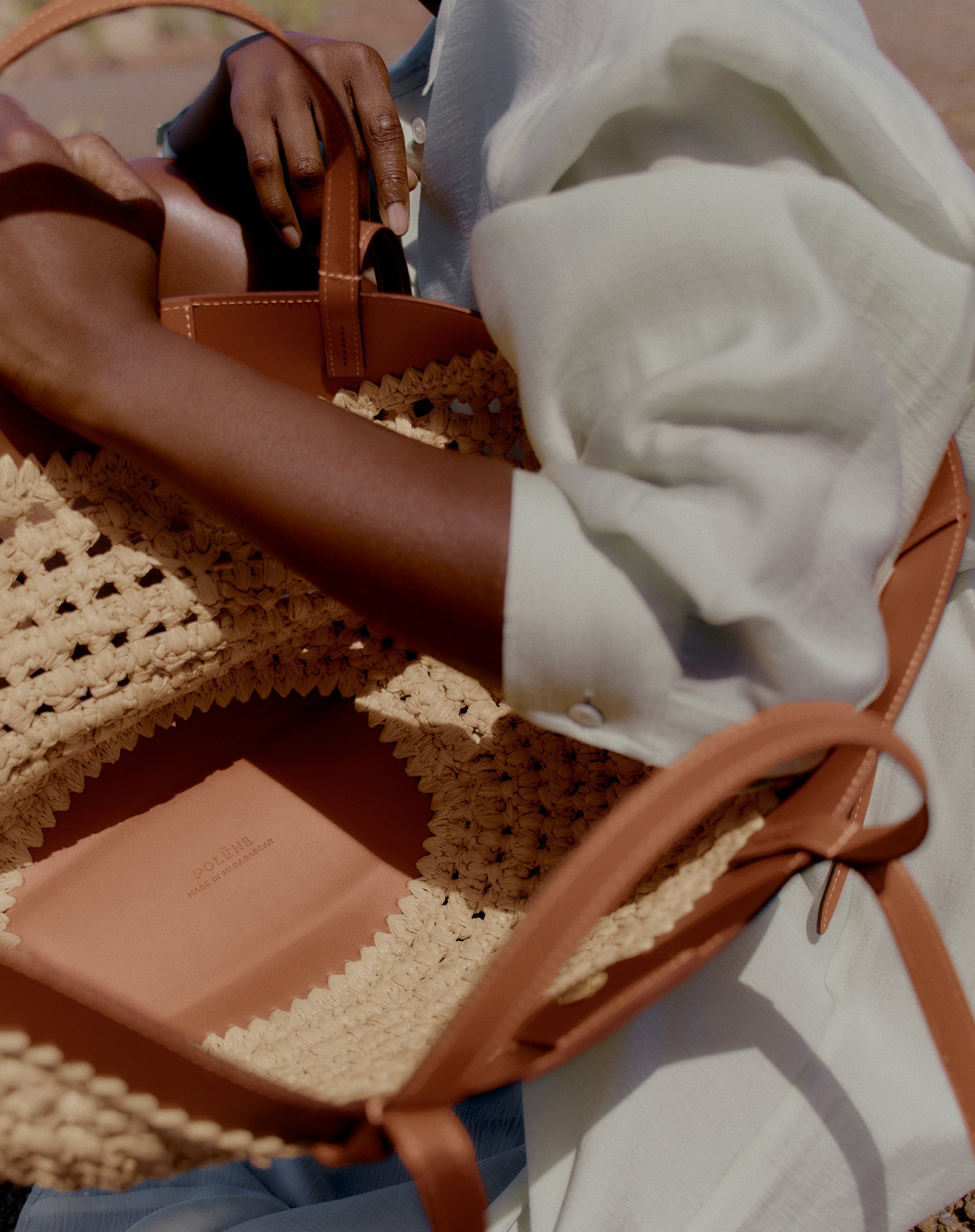 La fibre naturelle est mise en lumière dans une nouvelle ligne confectionnée à Madagascar. Sur l’île, le raphia issu des feuilles de palmier est au cœur de la culture locale. Son savoir-faire est préservé grâce aux artisans qui se transmettent leurs connaissances entre générations.