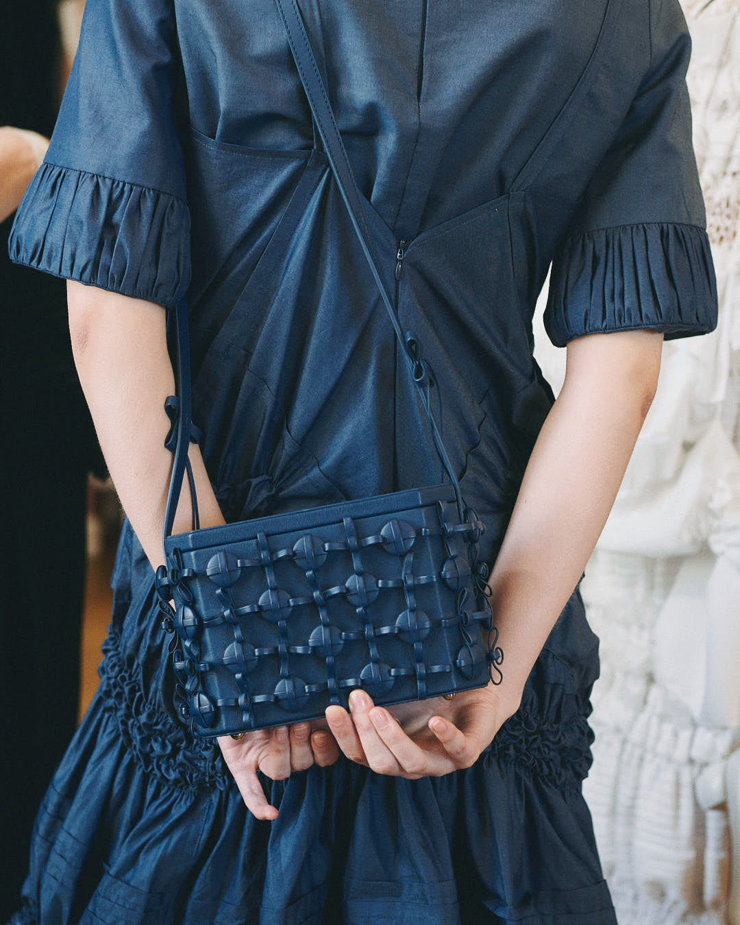 Réputée pour ses silhouettes uniques et sa réinterprétation contemporaine de la broderie artisanale irlandaise, la designer étend son univers poétique au cuir. Recherche de forme et savoir-faire donnent corps à deux sacs sculpturaux, confectionnés à la main par Polène à Ubrique, en Espagne.