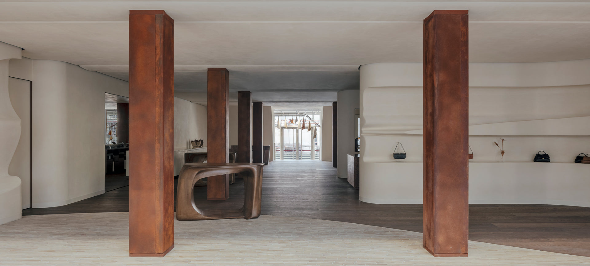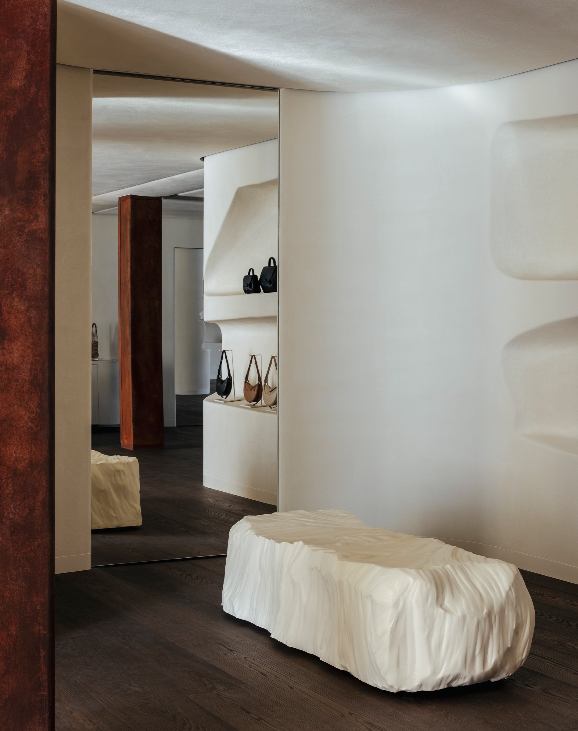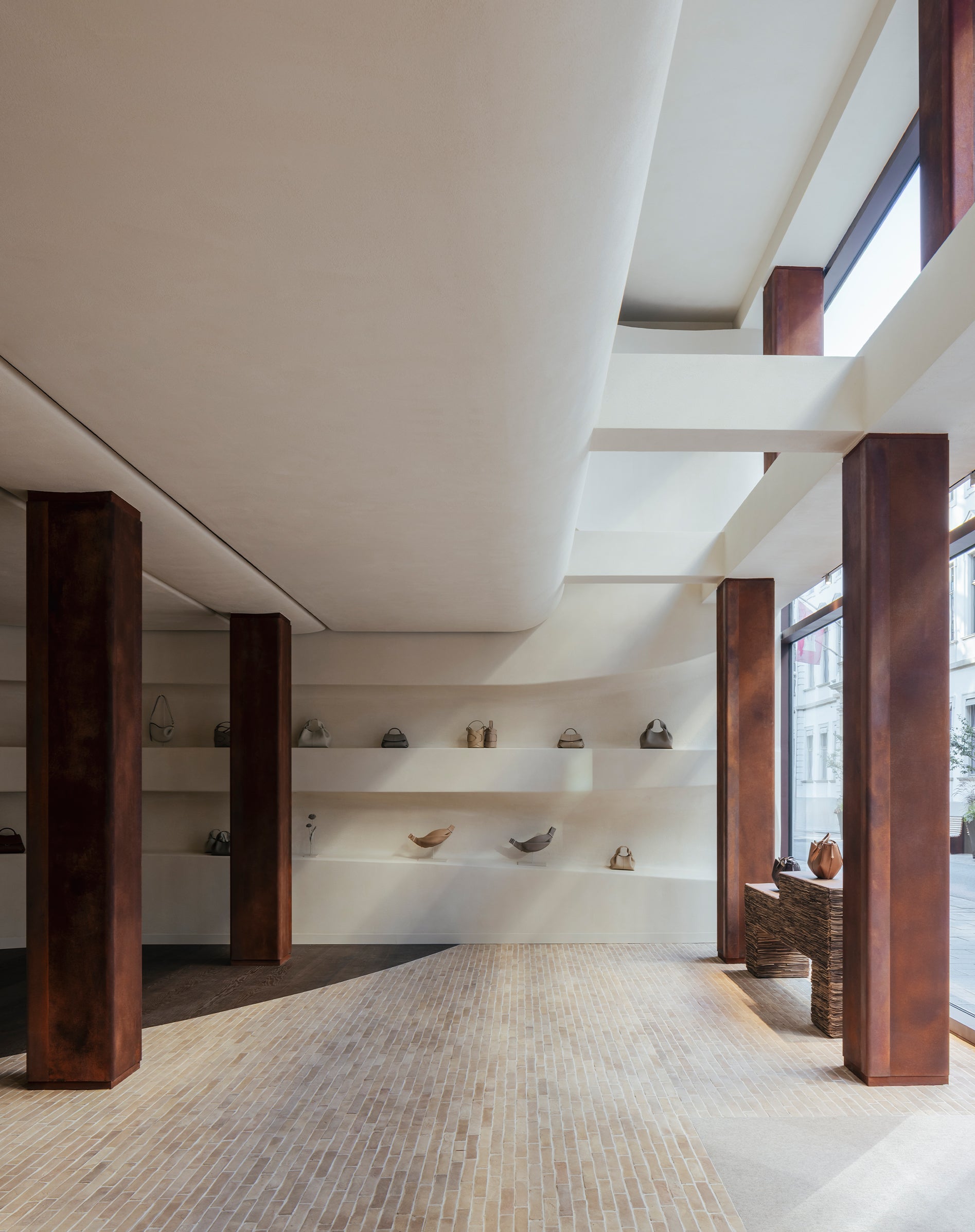 Au coeur du quartier de Neustadt, la boutique d'Hambourg a été conçue par l’agence Snøhetta. L'eau, si centrale à cette ville portuaire, inspire le travail des formes et les matières, comme marquées par son passage.
