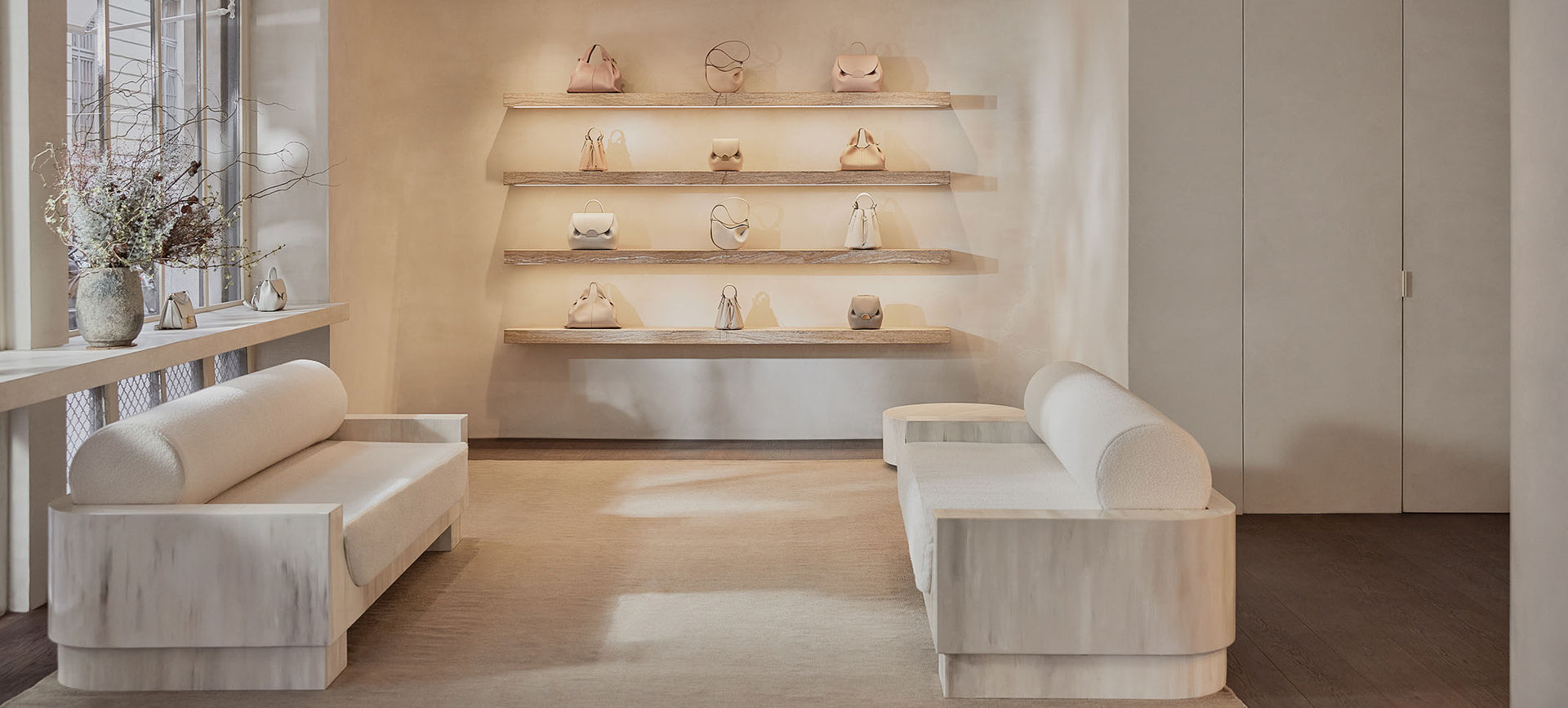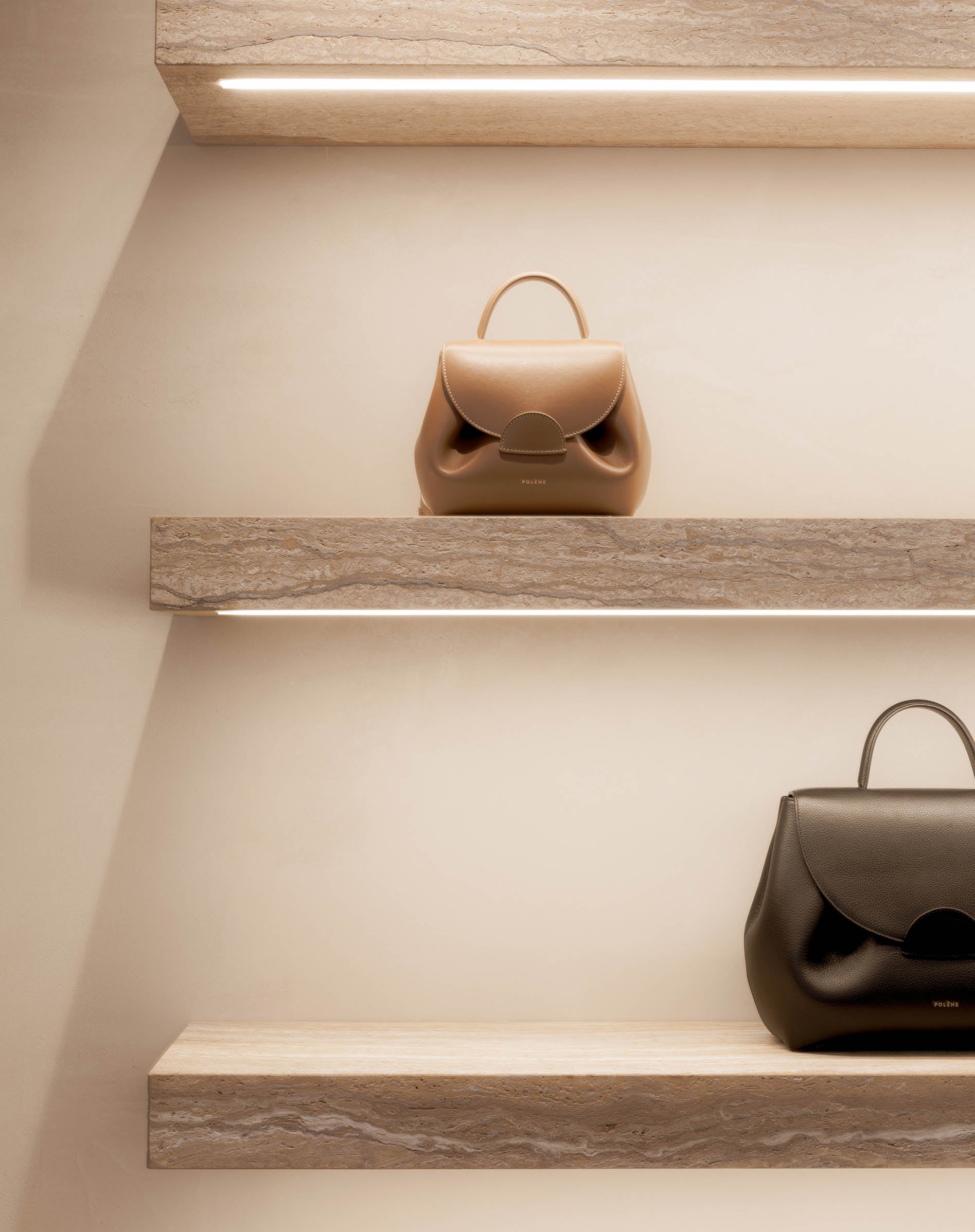 Organisée de part et d’autre d’une colonne sculptée du nom de Polène, la boutique révèle, dès l’entrée, une douce atmosphère baignée de lumière naturelle.