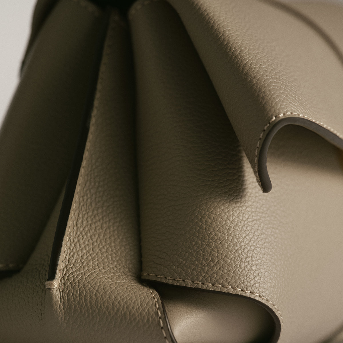 Au travers d'un assemblage ingénieux de trente-six pans de cuir, le modèle "Mokki Mini" valorise l'art du pliage avec son jeu subtil de cuirs grainé et lisse. Sous son rabat souligné d’un fermoir gravé, l’intérieur est compartimenté. Grâce à sa bandoulière adaptable maintenue par des mousquetons, le modèle suit avec fluidité le mouvement.