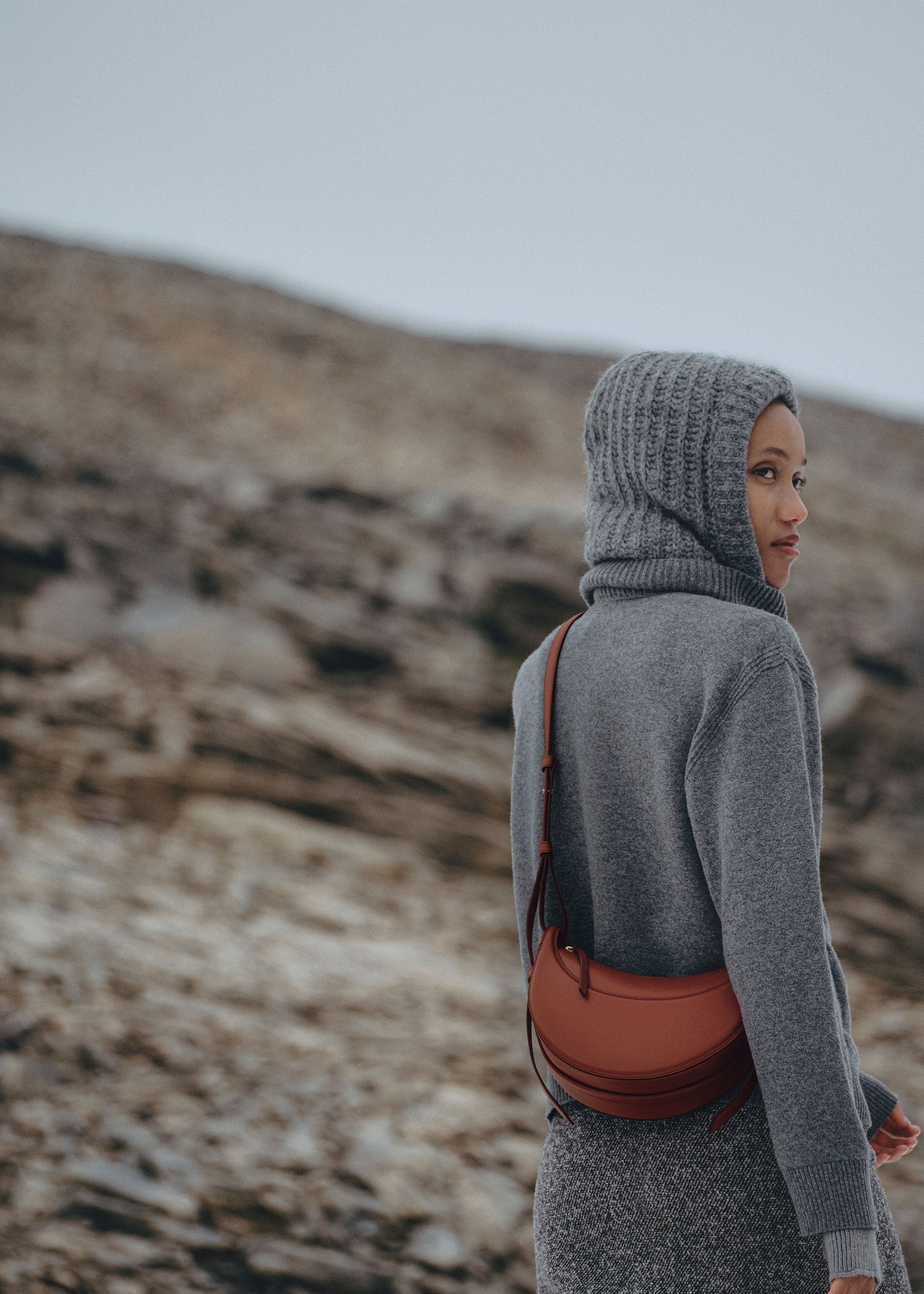 Avec sa forme bombée, son garnissage avec mousse et ses points cousus à la main, le "Numéro Dix" s’inspire des codes équestres de la sellerie. Son design demi-lune joue sur la juxtaposition de courbes.